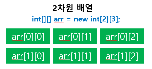 자바에서는 2차원 배열을 다음과 같은 방법으로 선언한다.