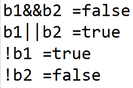 ! 연산자의 상태 부정이라 함은, b1의 값이 false가 대입되었을때, !b1을 실행하면 true가 된다. b2 값이 true가 대입되었을 때 !b2를 실행하면 false가 되는 것을 일컫는다.