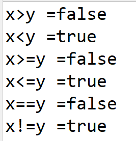 관계 연산자는 두개의 피연산자를 비교해서 참과 거짓을 도출할 경우에 사용한다. 피연산자란 연산자가 아닌 것. 즉 연산이 되는 대상을 일컫으며, 예제에서 사용하던 x와 y가 이에 해당된다. 관계 연산자는 다음의 기호들이 사용된다.